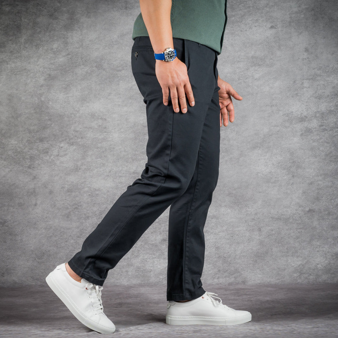 Designed with a low-rise, slim fit (not too skinny), and tapered legs, they offer a modern, tailored look without sacrificing comfort.